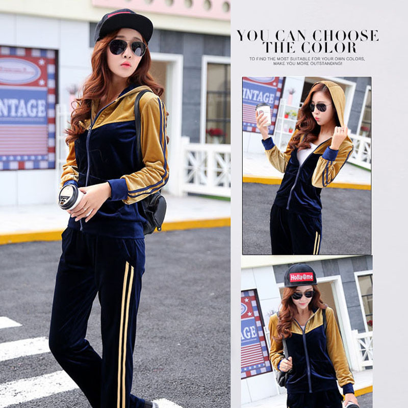 200 catty overweight overweight women's clothing spring autumn season Fat Man mm Sister pussy Long sleeve sports casual gold velvet suit