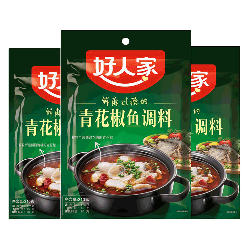 Good people's green pepper fish seasoning 210g*3 bags Sichuan green pepper fish spicy rattan pepper green pepper fish bottom material