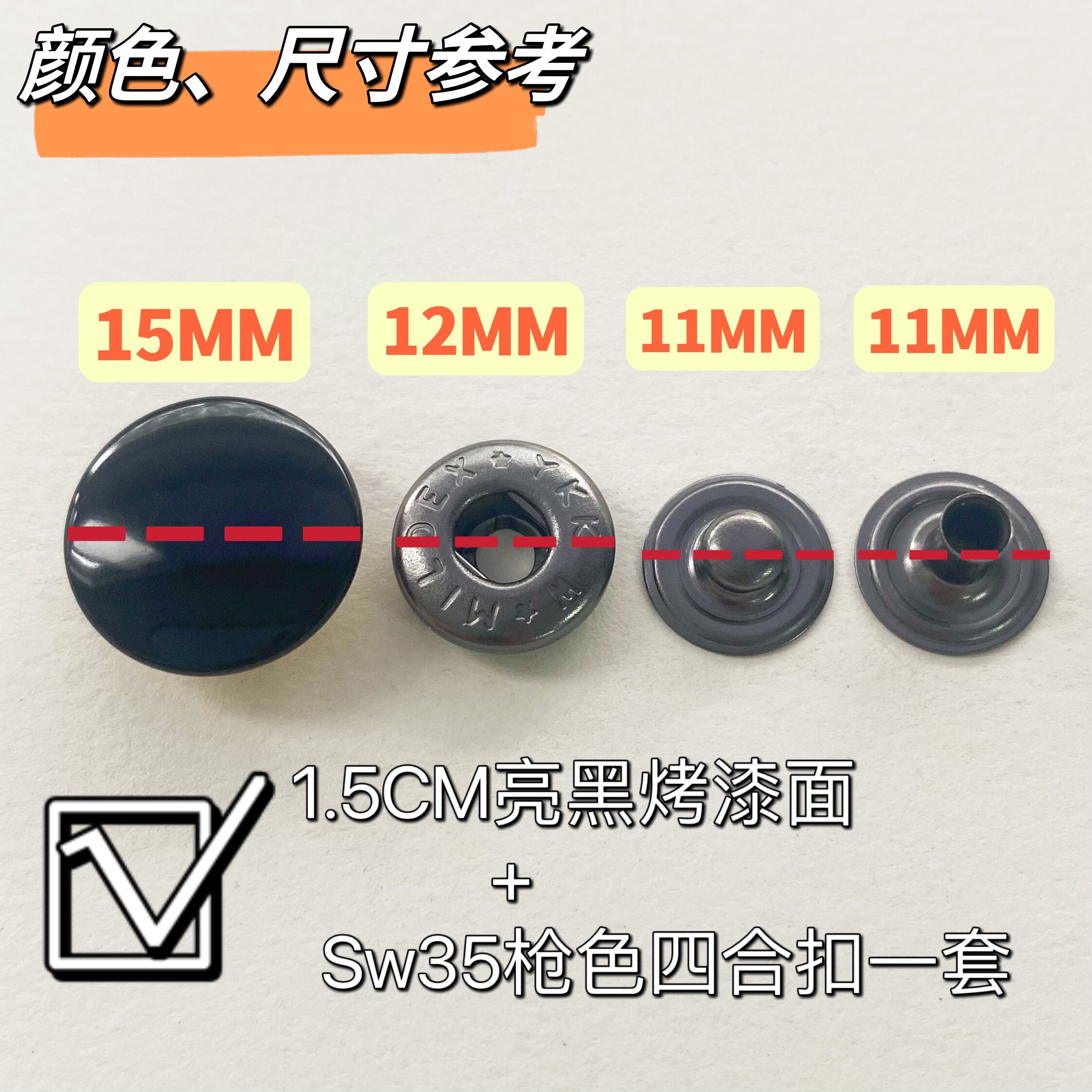 YKK button 15mm black paint bright surface SW35 SK35 all copper four-in-one big white button (for clothing factory)