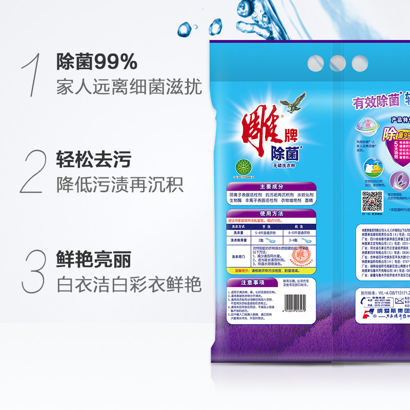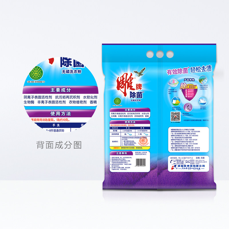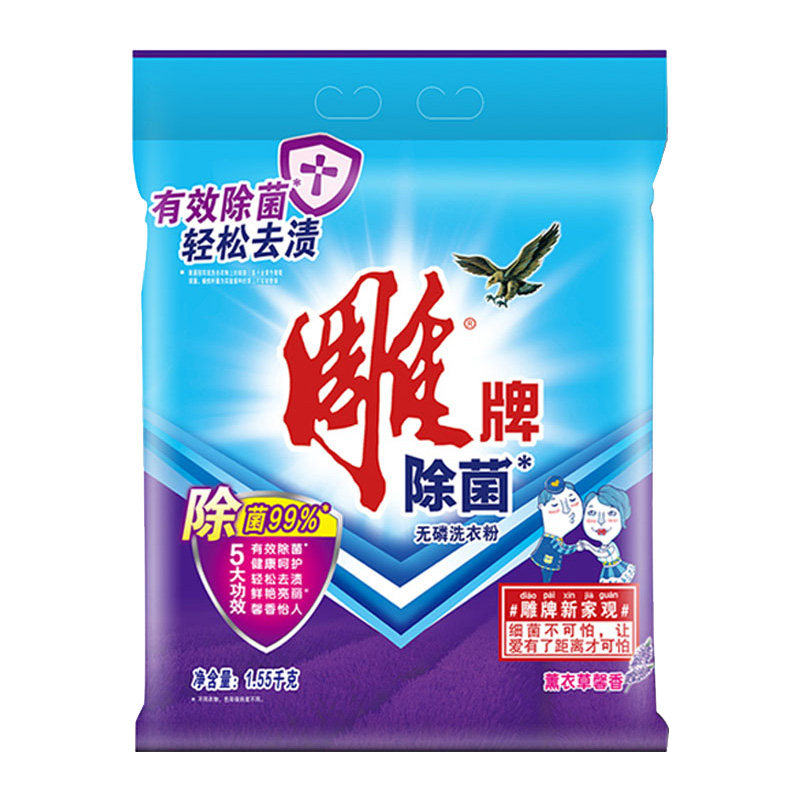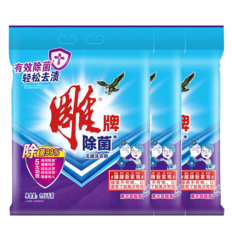 Carved brand sterilization phosphorus-free laundry detergent 1 55kg *6 bags lavender sweet fragrance whole box hoard sterilization 99% incense promotional pack