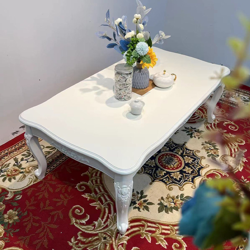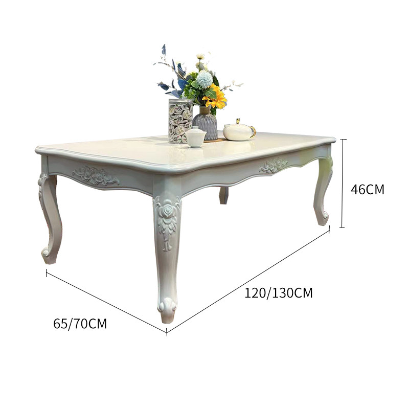 European style solid wood white long coffee table