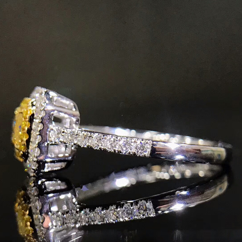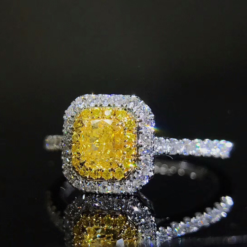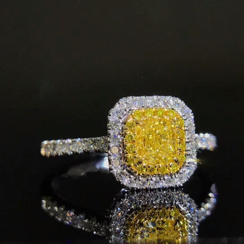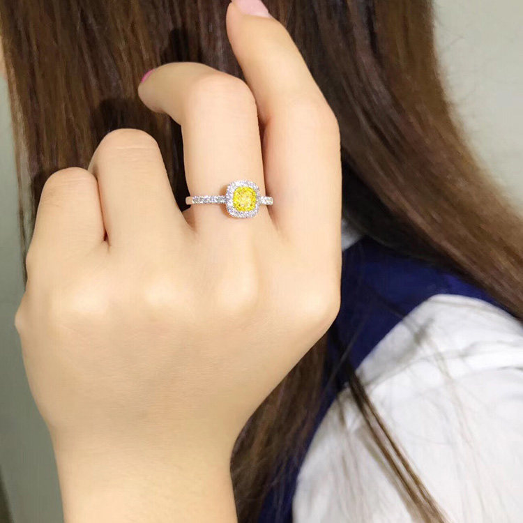Cushion-shaped 58 natural yellow diamond ring 18K gold inlaid 36 to drill colorful diamond female ring customizable GIA diamond