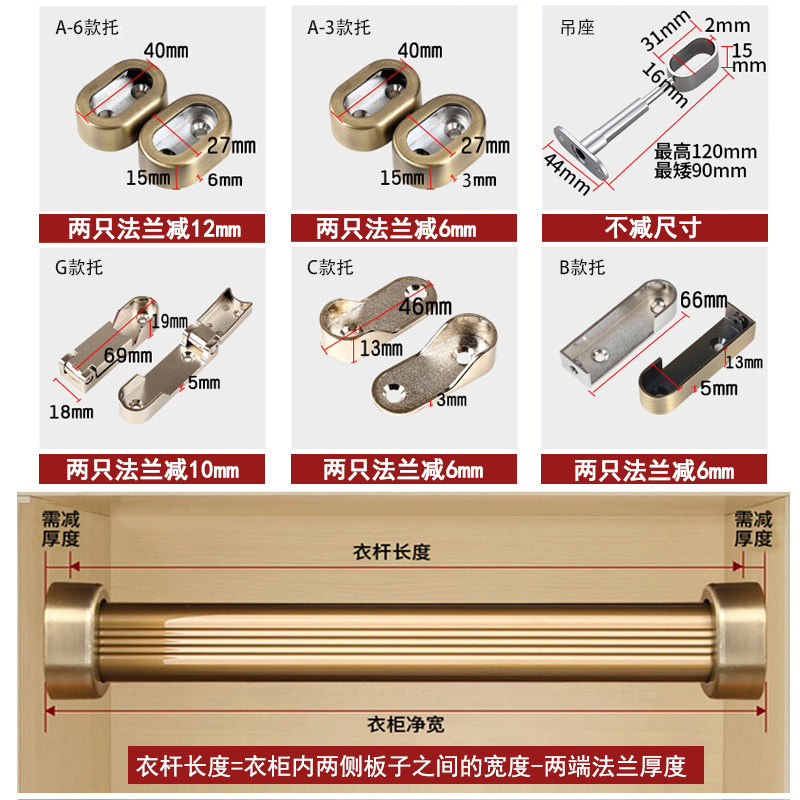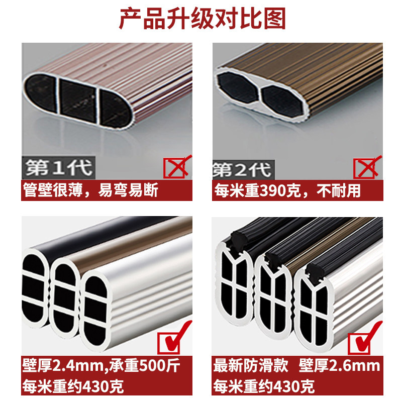 In the wardrobe, custom-made aluminum alloy thickened clothes rail wardrobe clothes hanger flat bar horizontal bar hanging bar bracket clothes bar