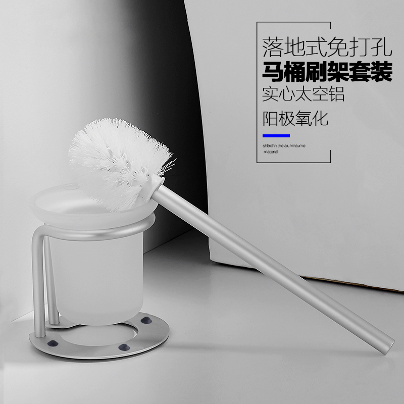 Floor standing toilet brush holder set space aluminum free punch cleaning toilet brush shelf toilet cup holder wall hanging
