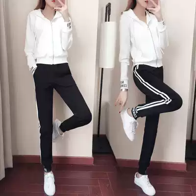 2021 new spring and autumn women's Korean casual suit hooded loose fashion sportswear long sleeve thick cotton T two-piece set