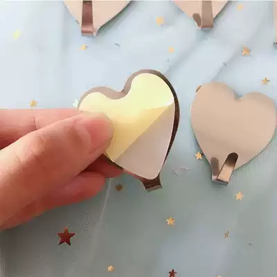 ins love sticky hook Korean hipster simple heart shaped stainless steel nail free no trace room decoration peach heart adhesive hook
