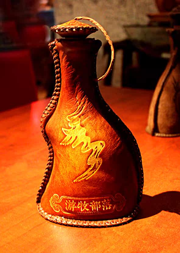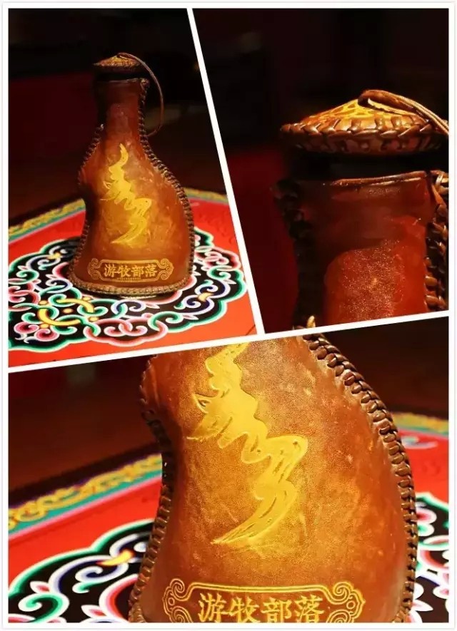 Grassland expeditions nomadic tribes Nomadic royal family Fugui Sheep Leg Pure Cow Leather Handcarved Wine Jug