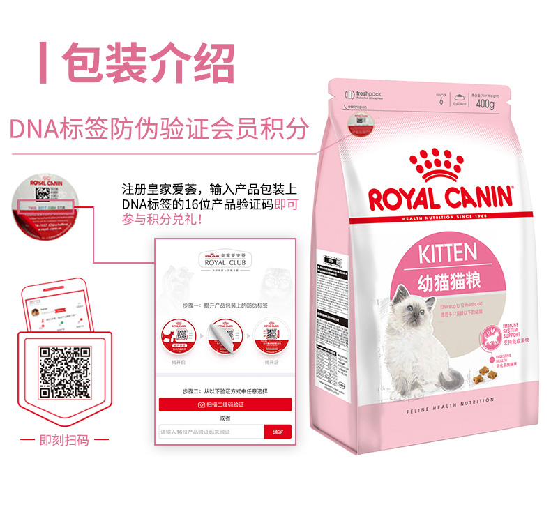 Royal kitten cat food k36 American short British short Garfield kitten kitten food pet cat staple food 400g*4 packs of c