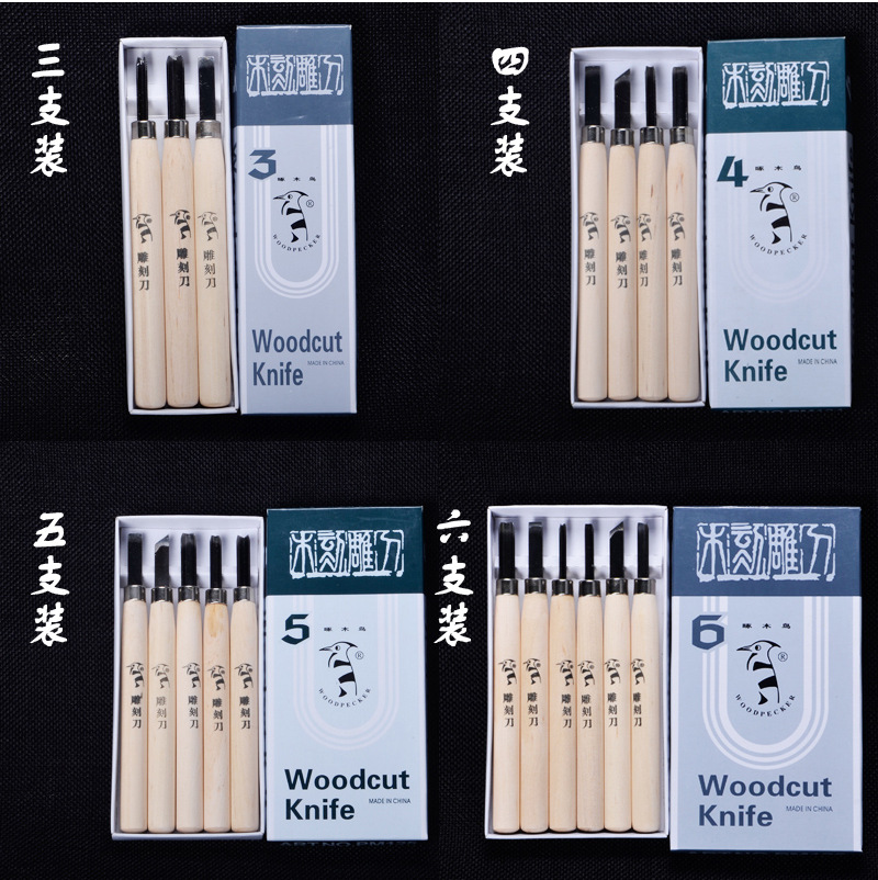 Woodpecker flat knife 6mm woodpecker oblique carving knife 7mm woodpecker corner knife small woodpecker corner knife big woodpecker round knife small woodpecker round knife big three-piece set four-piece set six-piece set
