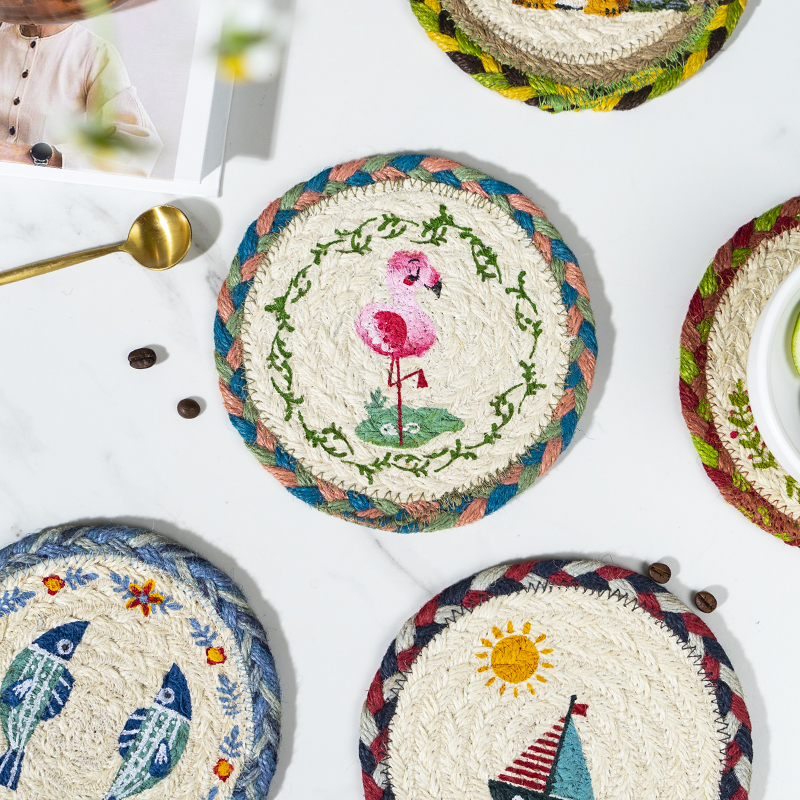 Creative Import Heat Resistant Cup Mat Hemp Rope Woven Dining Mat Cute Ins Wind Small Fresh Bowl Mat Insulation Cushion Home