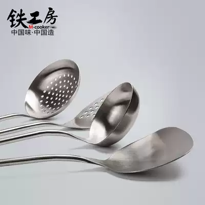 Iron workshop stainless steel spatula household cooking shovel colander spoon spoon soup spoon mixed noodle spoon wooden spoon shovel set