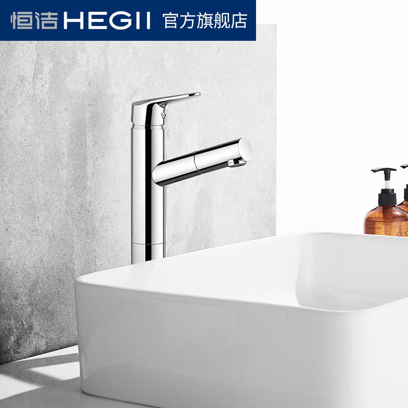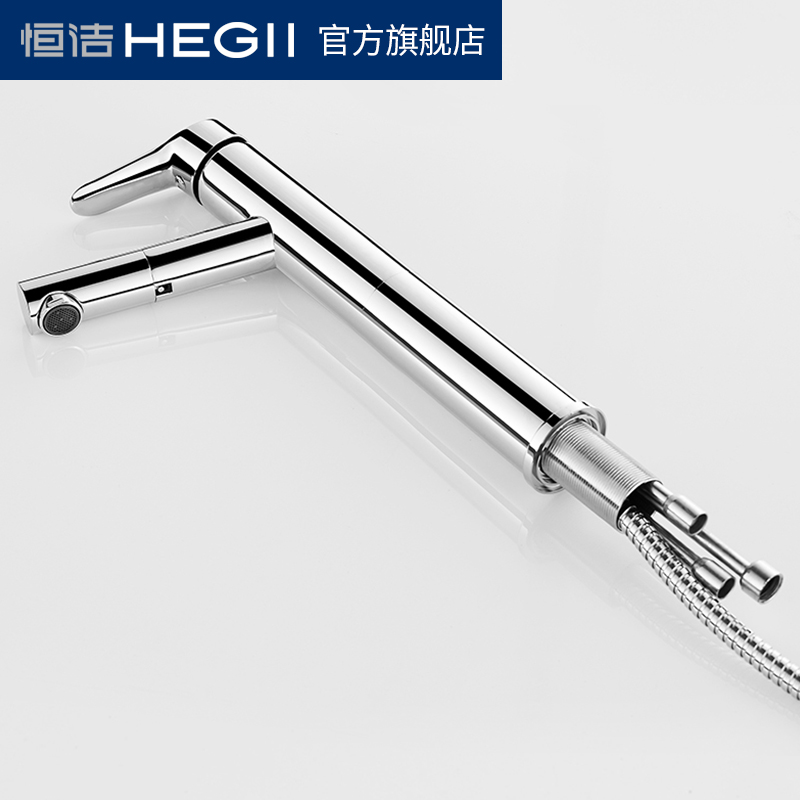 HEGII Hengjie Extended Washing head pull-out copper tap Single-hole drawbench basin High foot tap 125-113