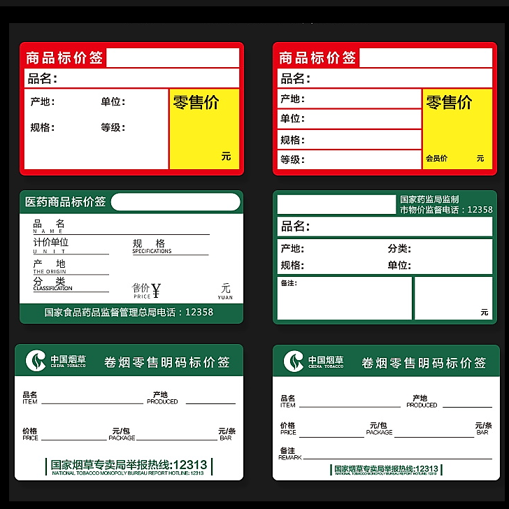 Merchandise Tags A section 50 * 30 * 230 sheets