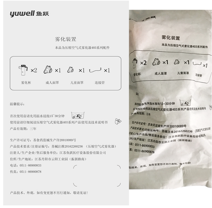 Atomization cup * 2 adult face mask * 1 child mask connection tube * 1