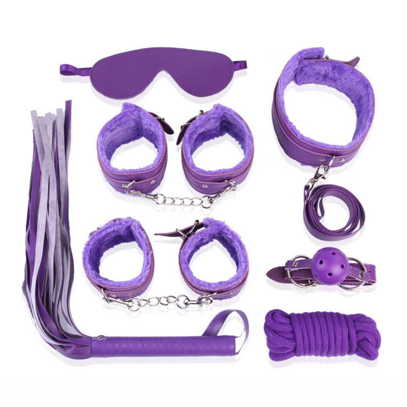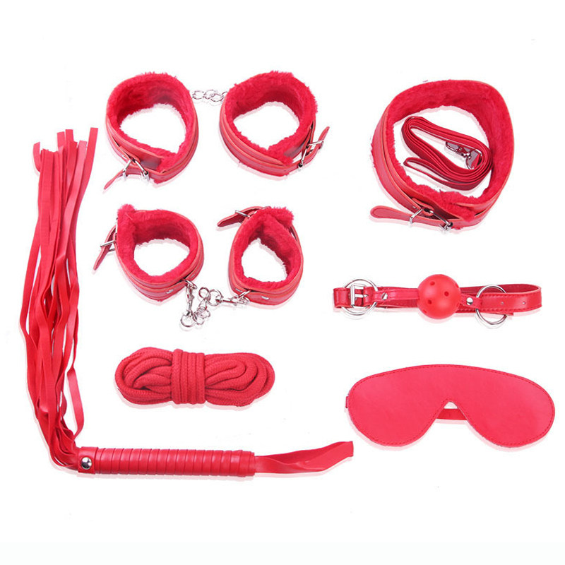 2 Pieces COSPLAY Accessories Black Leather Plush Handcuffs Set 7 Pieces Set of Adjustable Foot Small Leather Whip