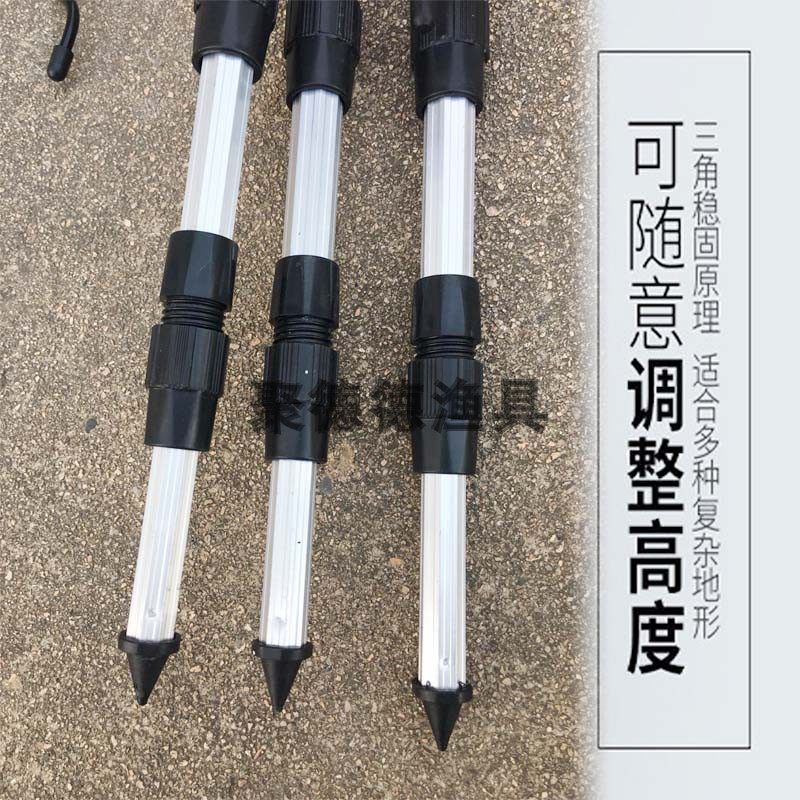 Multi-function sea pole bracket Triangle bracket Long throw telescopic raft rod Rock fishing rod Aluminum alloy thickened three-legged battery