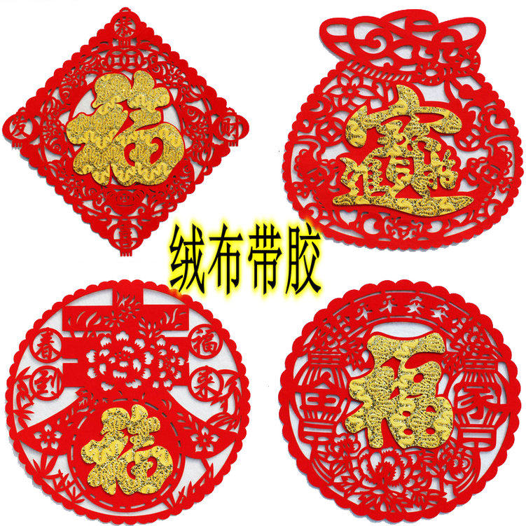 Year of the Tiger 30cm flocking hollow three-dimensional zodiac blessing word with glue window glass balcony? With car electric appliance wall door sticker
