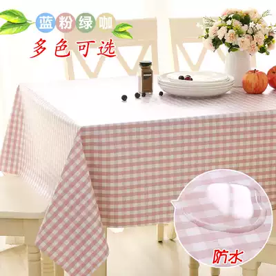 PVC waterproof tablecloth is rectangular, anti-scalding, oil-proof, wash-in dining table, pastoral plastic basket, green powder grid customization