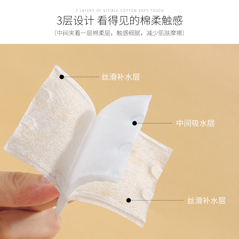Snow Mary three-layer thickened edge double-sided makeup cotton lip makeup remover cotton makeup moisturizing face Chinese tool female