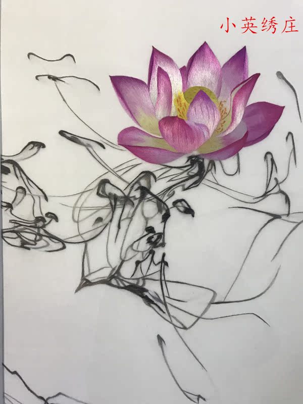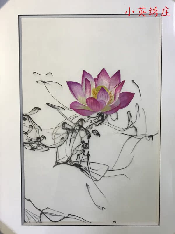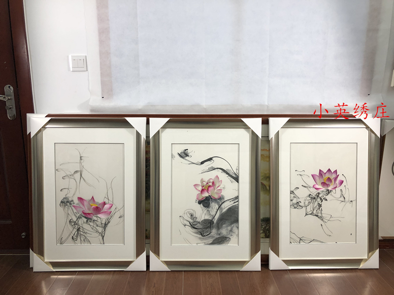 Pure handmade new boutique Suzhou embroidery painting Suzhou embroidery finished hanging painting porch decoration painting 4060 ink lotus 2