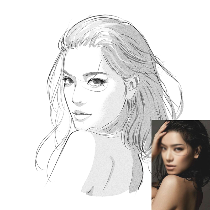 Sketch realistic line draft Sketch avatar q version live photo Hand-drawn comic silhouette outline Stick figure design painting