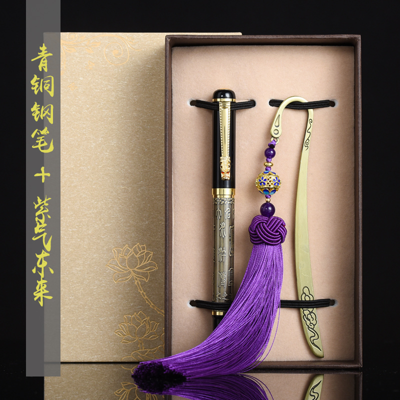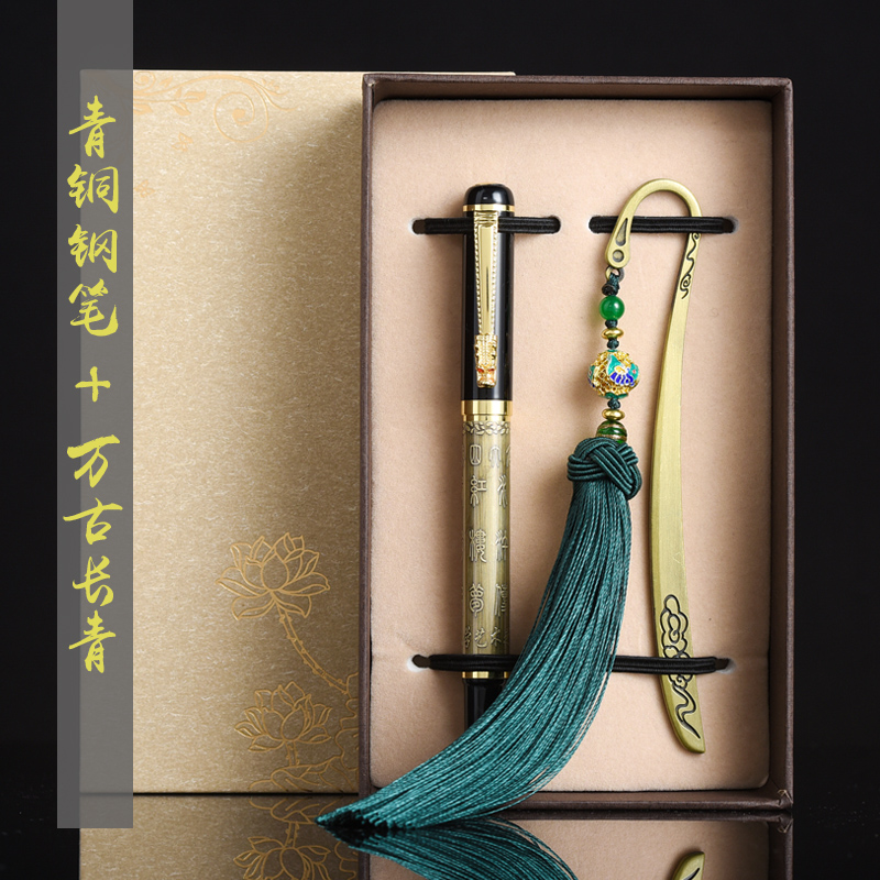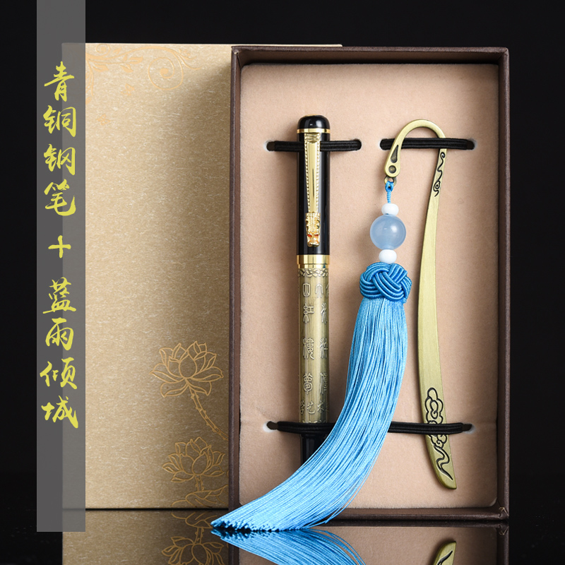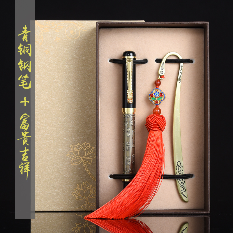 Complex classical Chinese style metal bookmark signature pen set gift box Exquisite literature and art ancient style Forbidden City cultural and creative products sent to teachers and students company souvenirs business gifts custom logo engraving