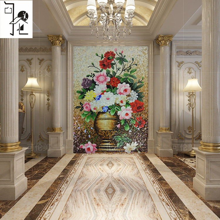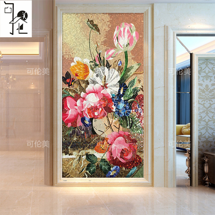 Mosaic Jigsaw Puzzle Parquet Background Wall Custom European-style Oil Painting Vase Dining Room Entrance into the house Guan Guan Living-room Mirror Mural Painting