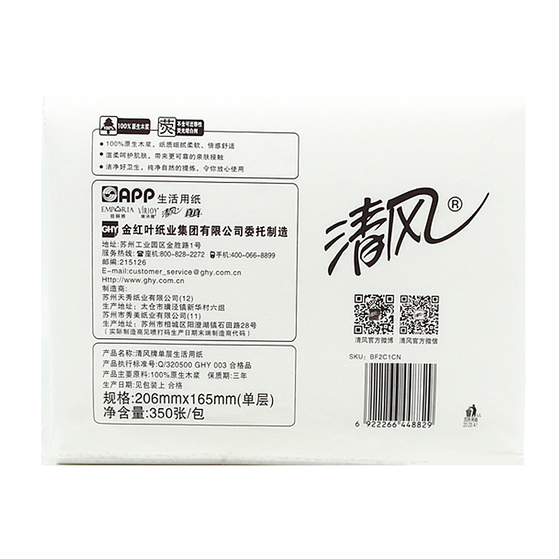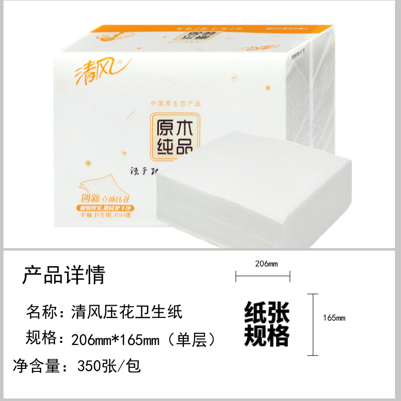 Clear Wind BF2C1CN Log Pure solid embossed flat paper toilet paper 350 sheets * 8 packs of straw paper towels