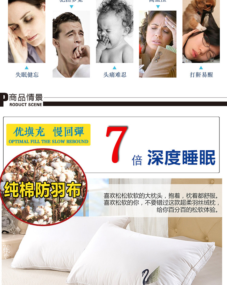Goose feather pillow five-star hotel down pillow core single white goose down pillow cervical spine pillow special price one pair two