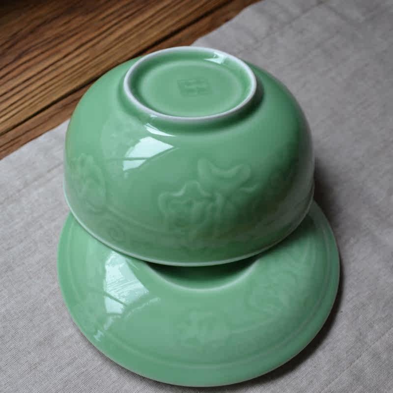 Chinese style ceramic with lid soup bowl Longquan green porcelain rose pans Home Foam Noodle Bowl Stew bowl Large Number Saucepan Saucepan