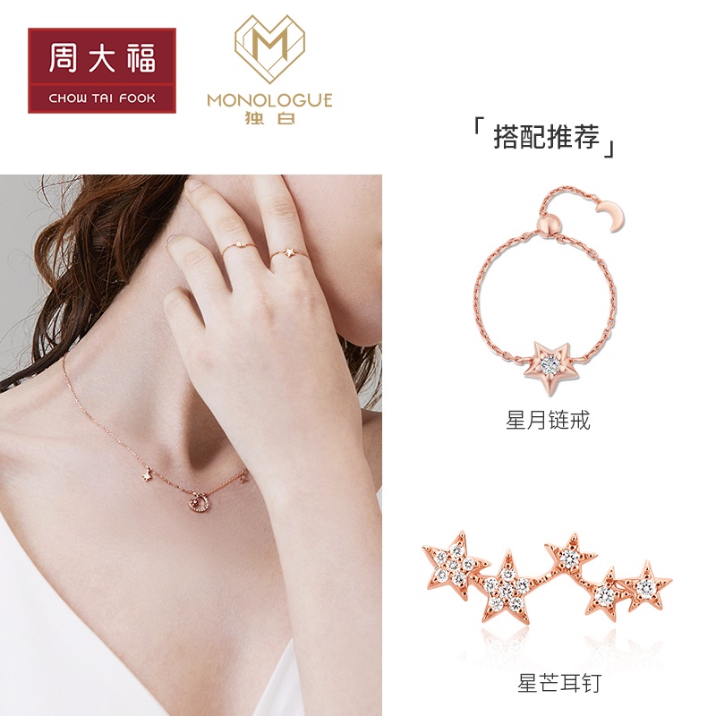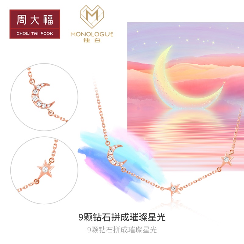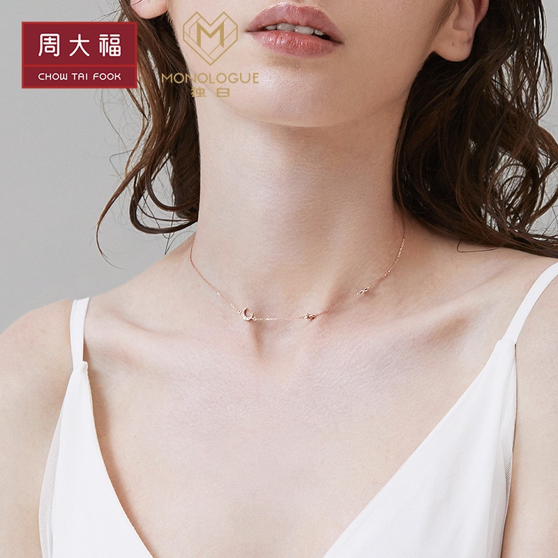 Chow Tai Fook Monogue Good Night Collection 9K gold diamond necklace pendant MU146 boutique