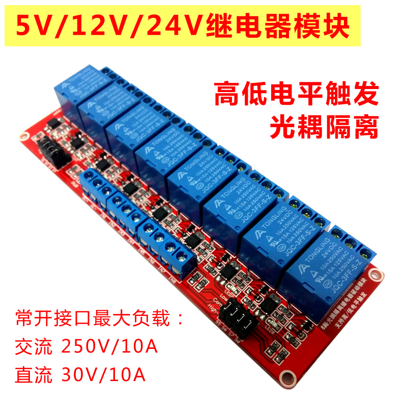 1 2 4 8-way belt optocoupler isolation relay module supports high and low level triggering 5V12V24V development board D