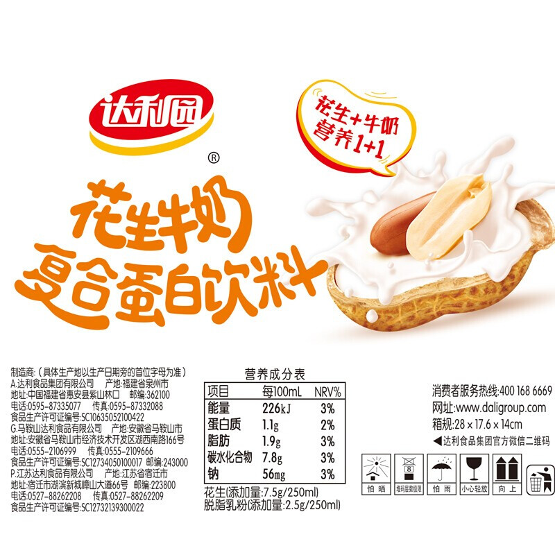 Dali Garden Peanut Milk 250ml * 24 Boxes Whole Box Loaded Original Taste Breakfast Milk Vegetal Protein Drink 4 Boxes