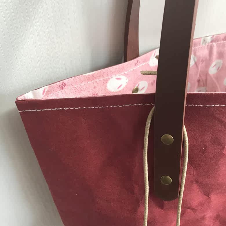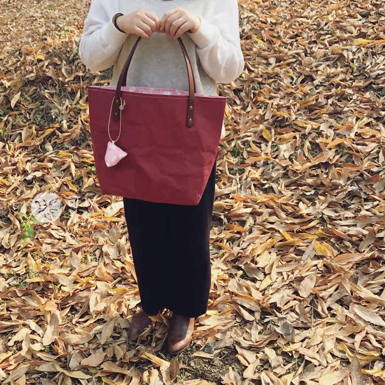 (small island handmade) (four-time dollar pocket) cross section washable kraft paper shopping bag berries red