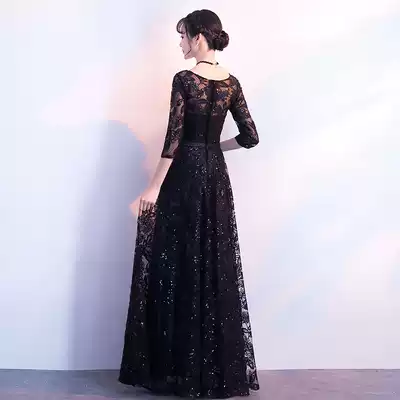Banquet evening dress skirt female 2021 new black noble summer host temperament chorus thin conductor