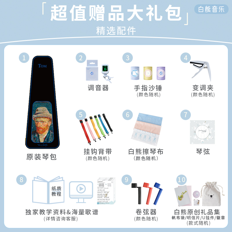 White Bear Music TOM Ukulele Van Gogh Beginners 23-inch Illustration Design Single Board ukulele Guitar