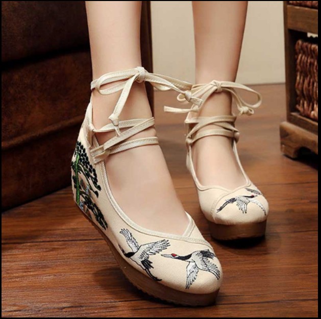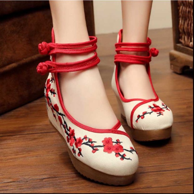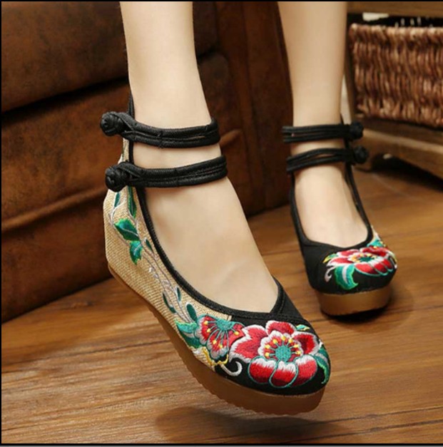 Retro embroidery flowers anti-slip thick bottom ethnic wind spring and summer Han clothes Beijing Old cloth shoes dance women's single shoes Han version 100 lap
