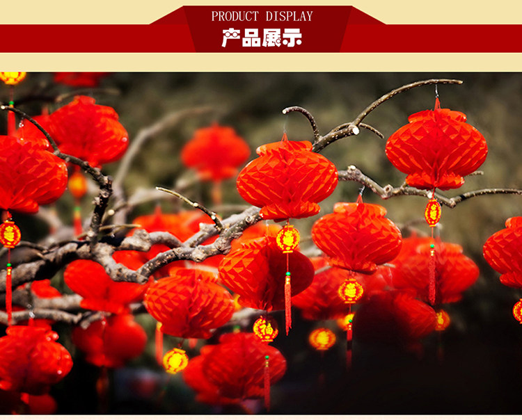 New Year Spring Festival Lantern Waterproof Small Paper Lantern Honeycomb String Wedding Celebration Decoration Opening Supplies Plastic