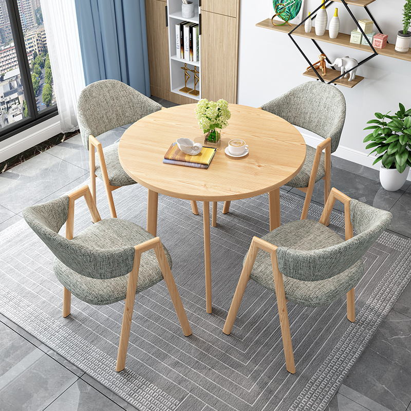 Dark gray khaki green blue yellow coffee orange white light gray camel royal blue silver brown chestnut transparent log color round table 80CM 4 light gray cloth chairs log color round table 80CM