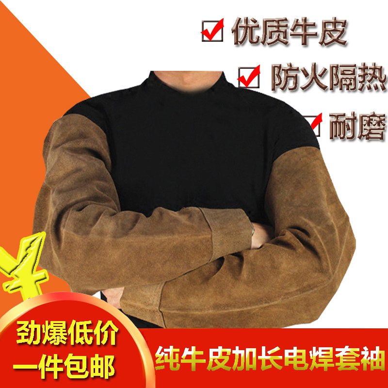 Pure cowhide welding sleeve sleeve Wear-resistant heat insulation anti-scalding high temperature fire flower splash welder arm protection