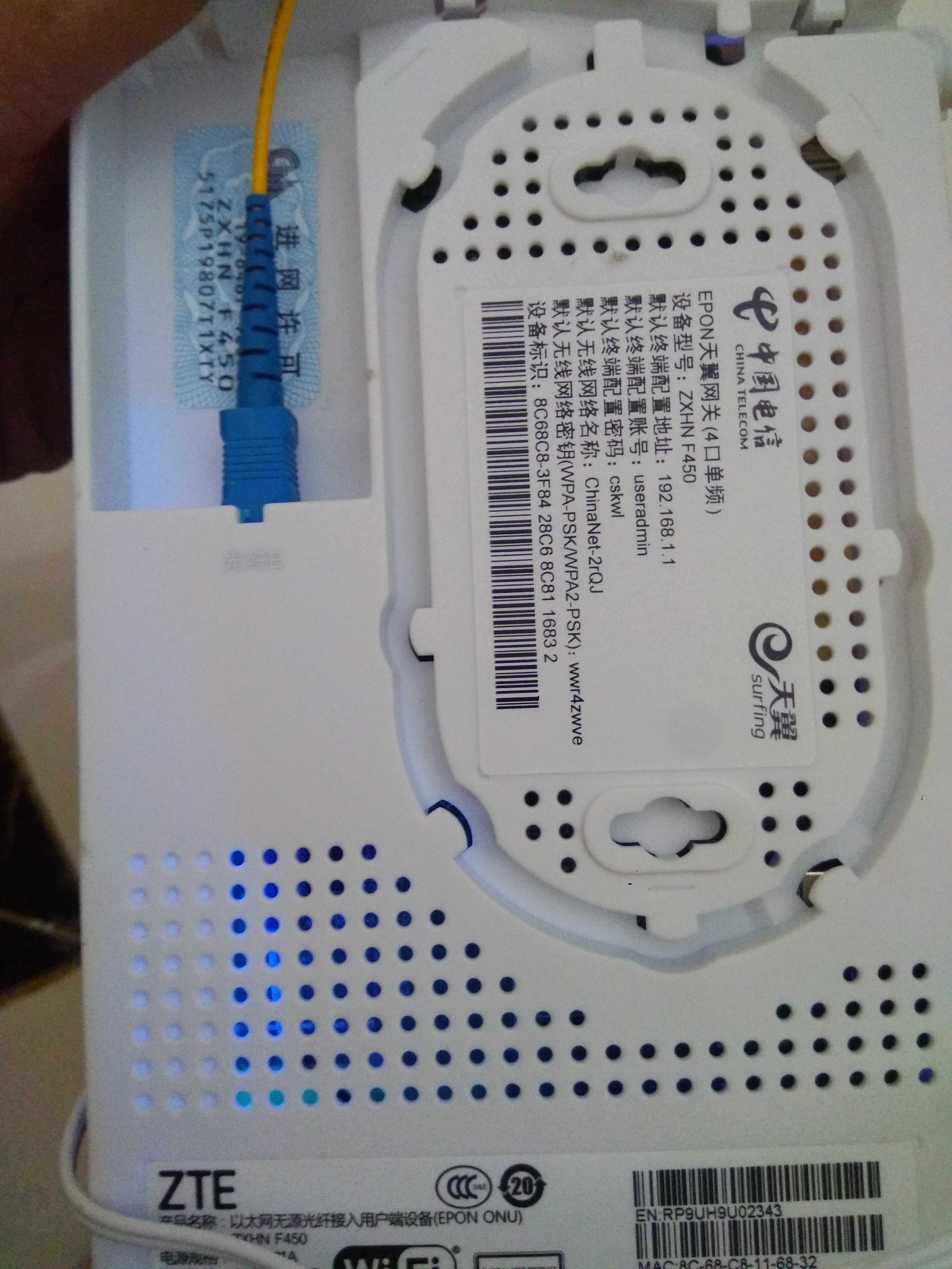2021 new original Hubei Telecom ZTE F450 full gigabit 40 edition Tianyi gateway full Gigabit optical cat