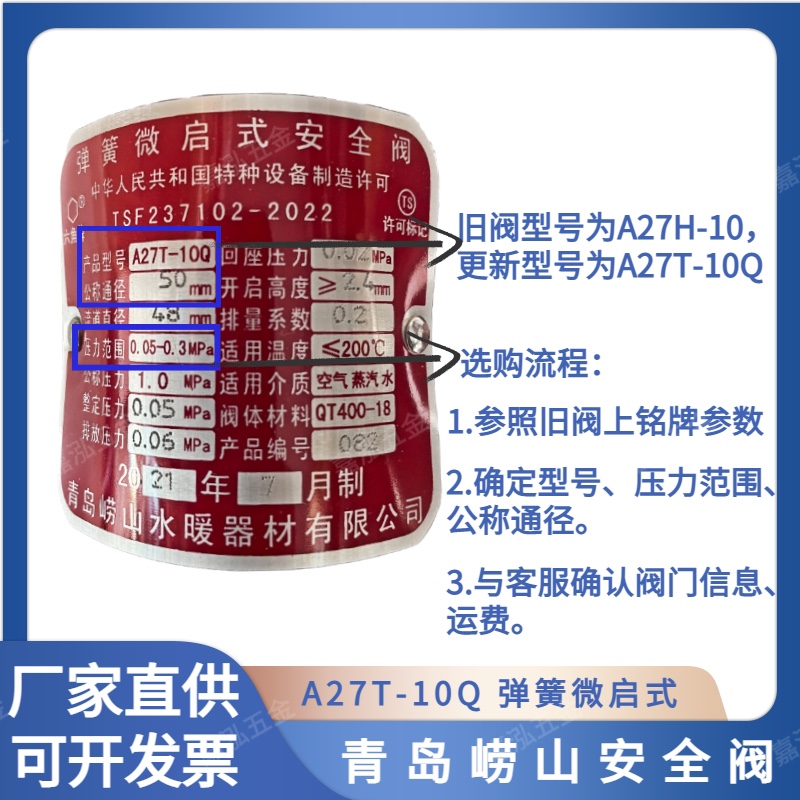 Qingdao Laoshan Mountain safety valve A27T-10Q spring micro-set hexagonal plate storage tank steam boiler pressure relief valve 15