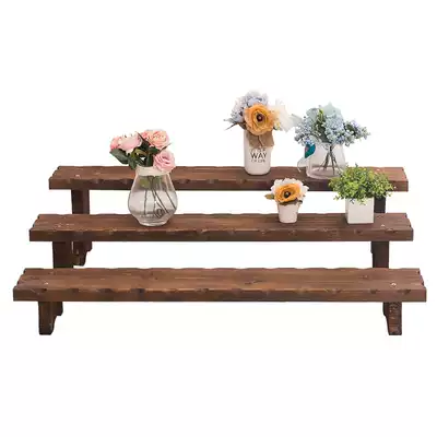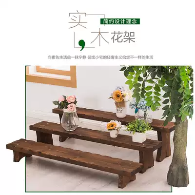 Step foot solid wood balcony flower stand floor long strip bench wooden flower stool indoor living room multi-layer potted shelf