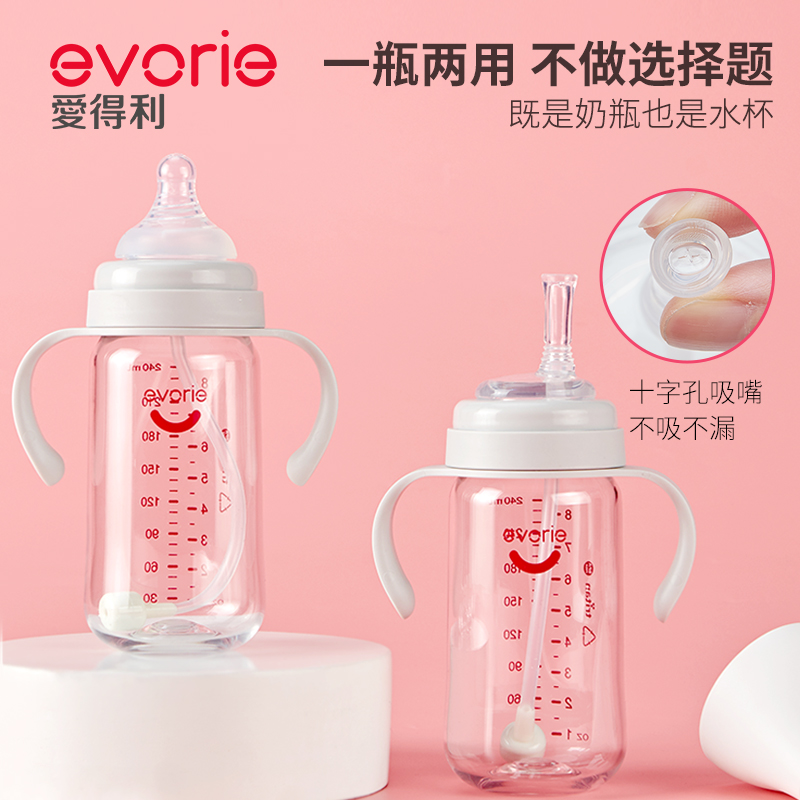 Love to gain wide bore bottle newborn baby with straw large capacity baby with handle anti-fall qi