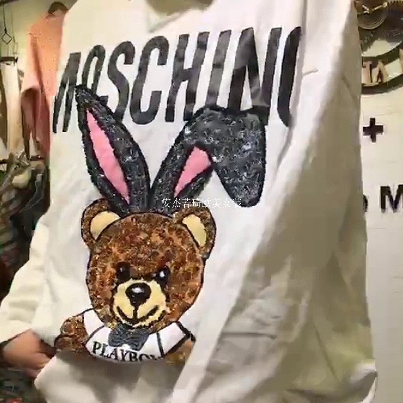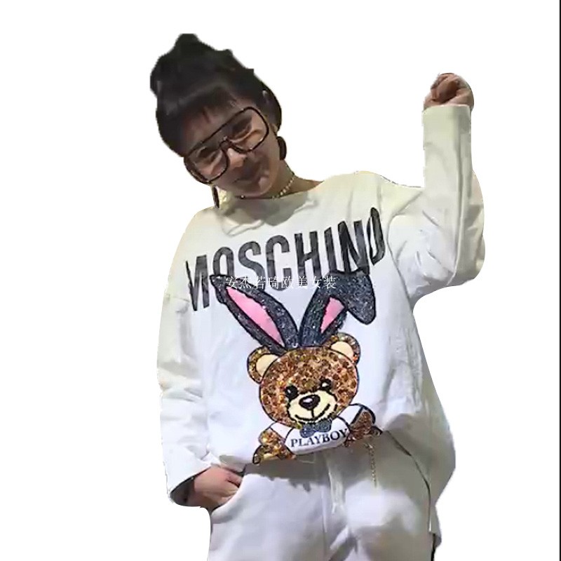 European station 2022 autumn and winter new chest bear with rabbit ears English letters long-sleeved loose fashion sweater