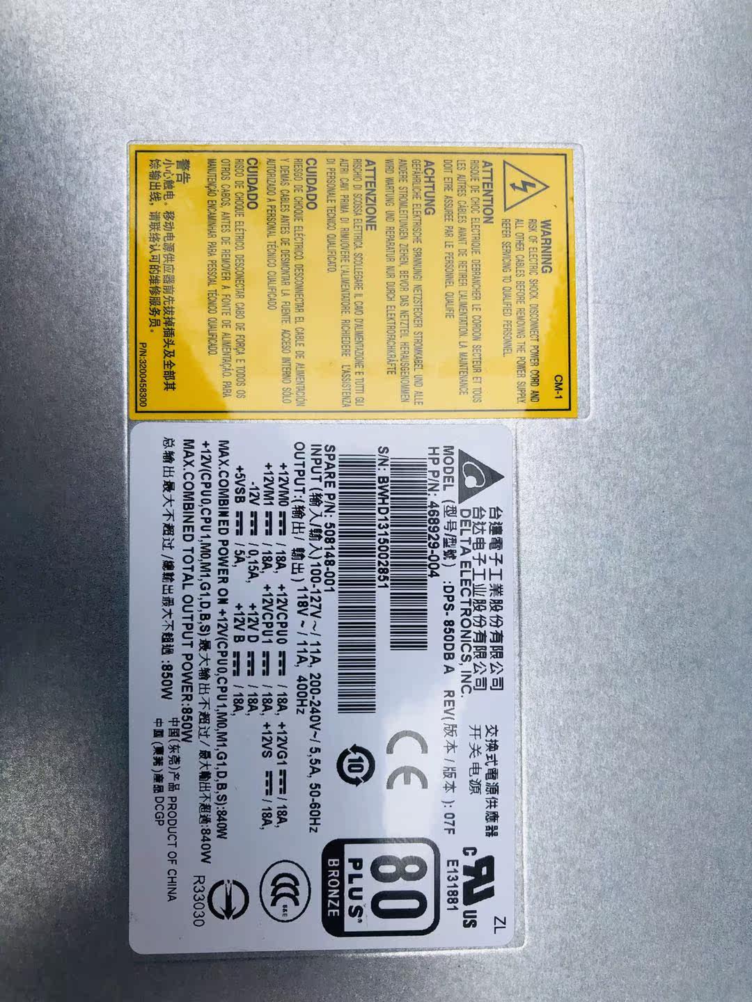 HP HP Z800 Workstation 850W 1125W Power Supply 508149-001 DPS-850DB