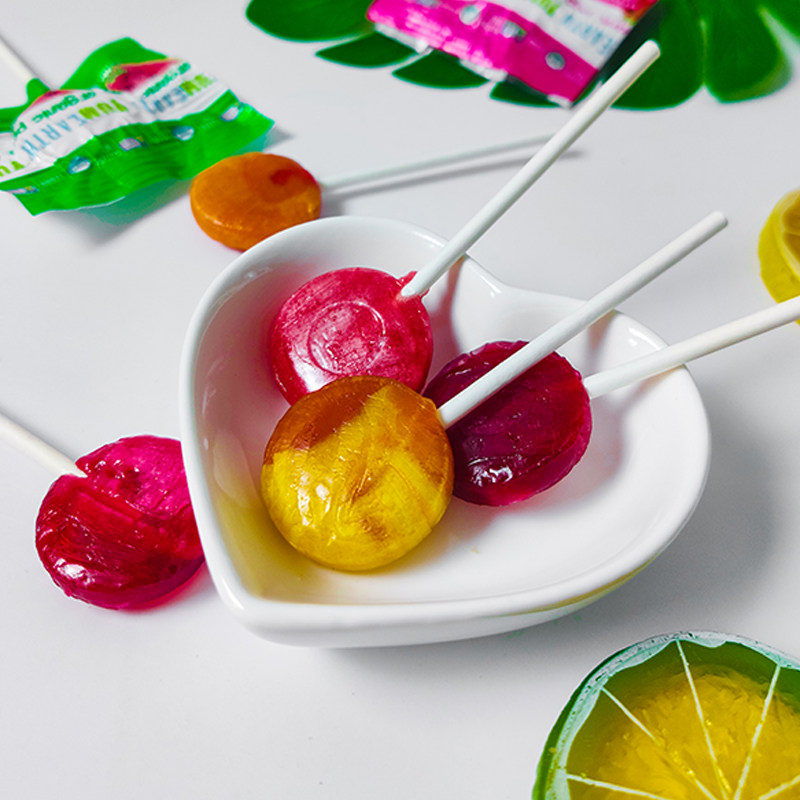 A combination of fruit-flavored lollipops