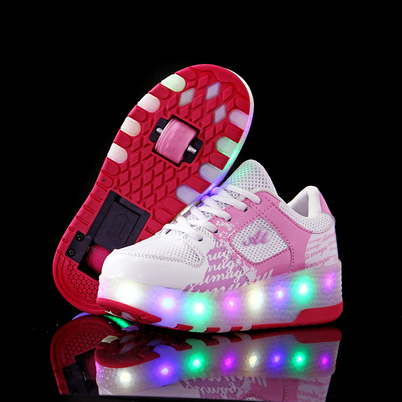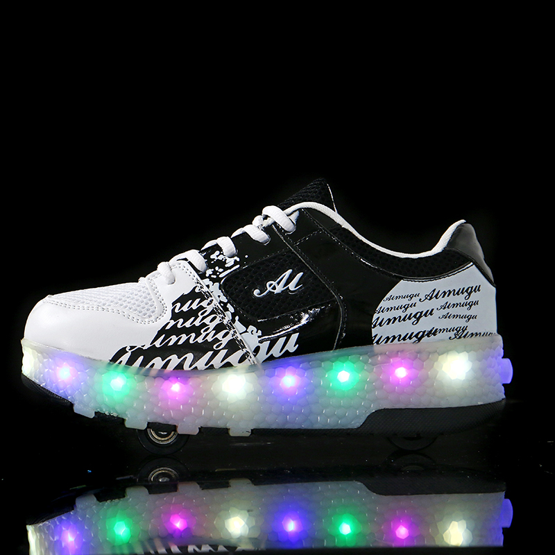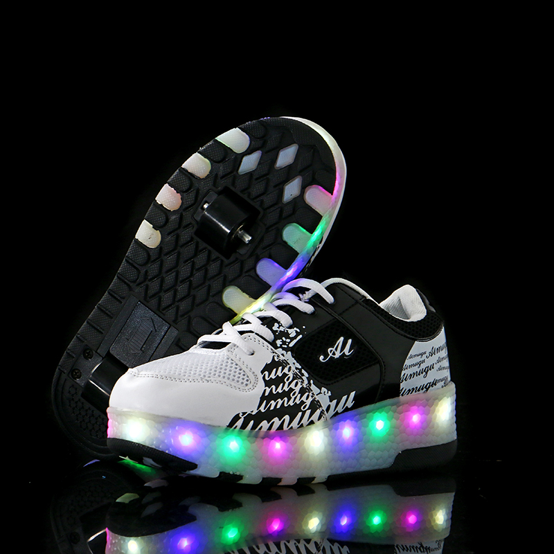 Men's and women's children's adult heely shoelaces LED lights double-wheel buttons with pulley sneakers burst shoes