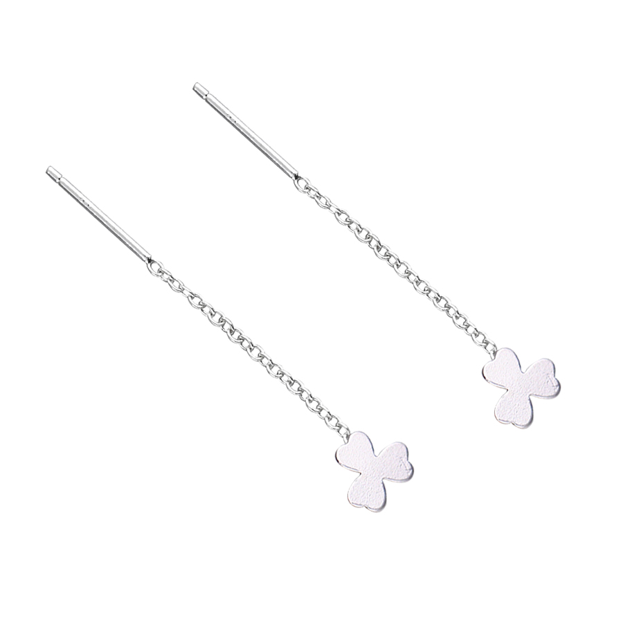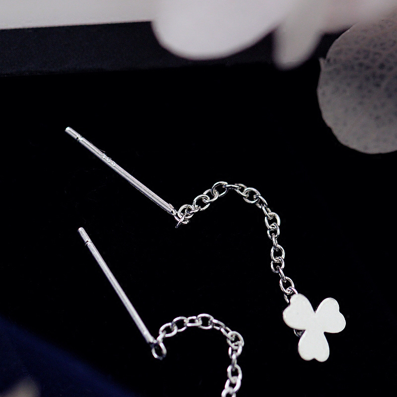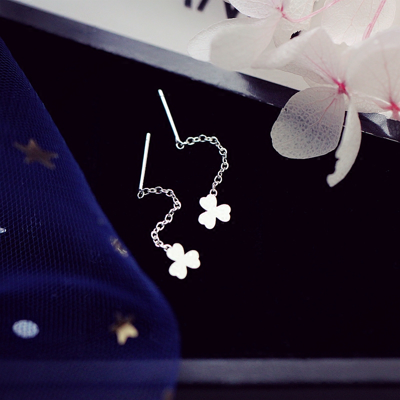 Small Z Youpin S925 sterling silver Japanese and Korean small fresh three leaf flower lucky earrings Sweet flower drop earrings Student gift