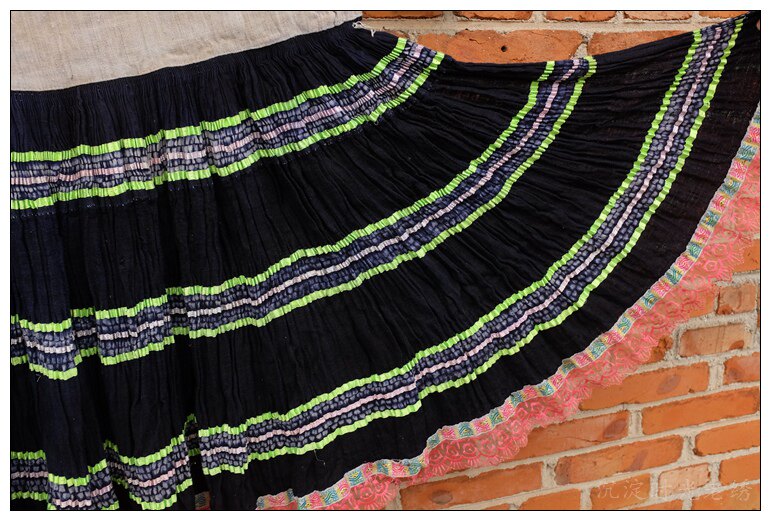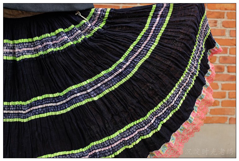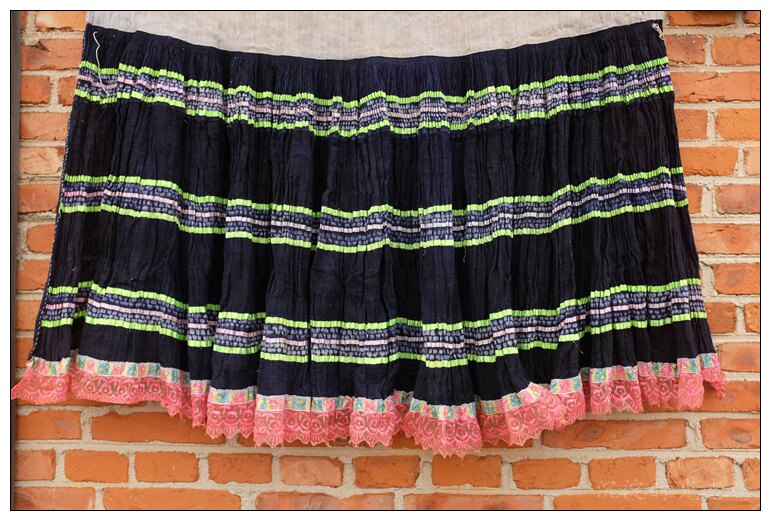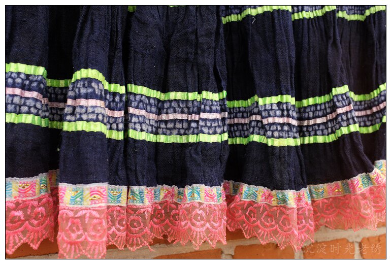 Miao handmade blue indigo batik pleated skirt waist 111cm 1-137
